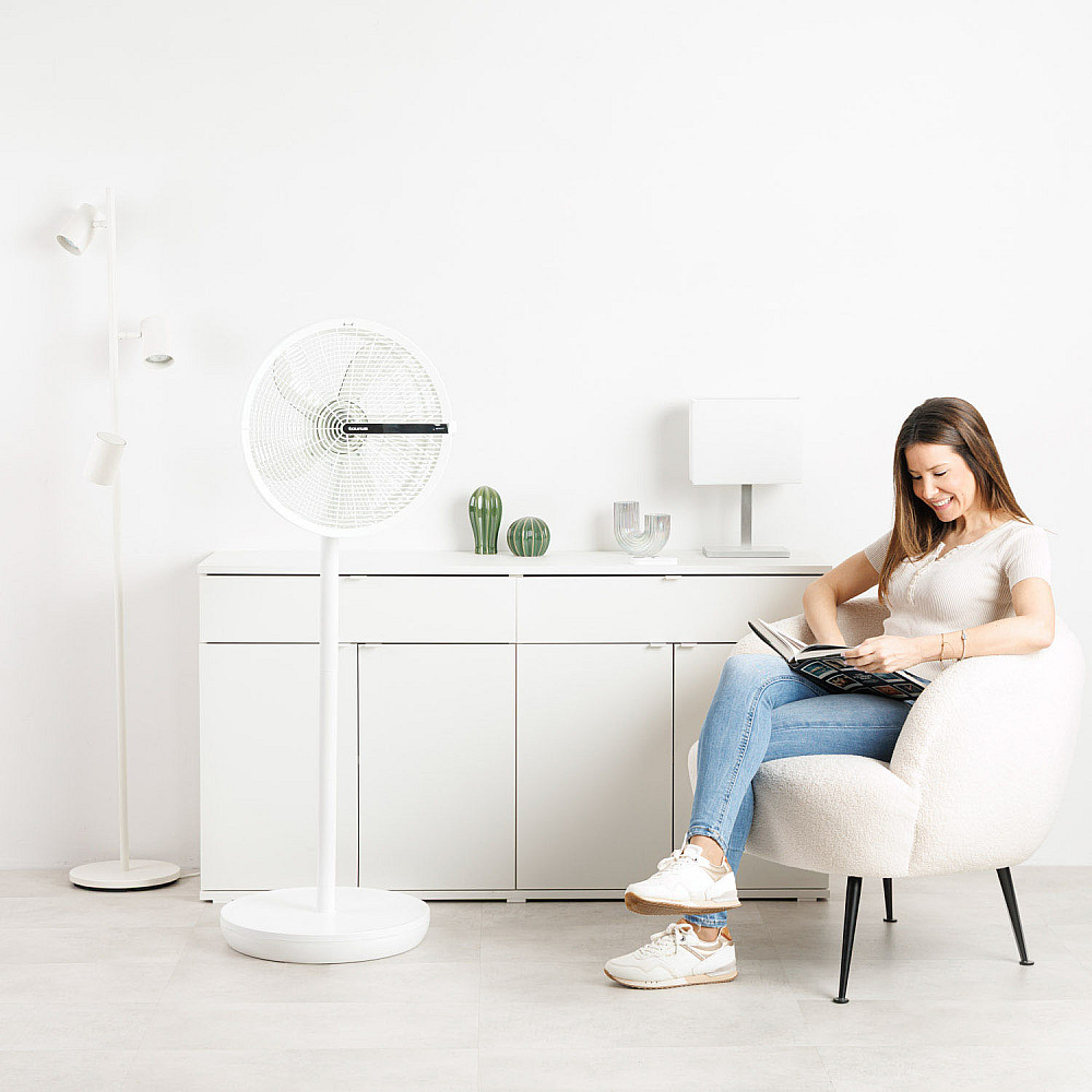 Smart och användarvänlig. Den tydliga pekskärmen och den medföljande fjärrkontrollen gör det enkelt att styra fläkten på avstånd. Timerfunktionen möjliggör programmerad automatisk avstängning, medan den halkfria basen säkerställer stabil och trygg användning.