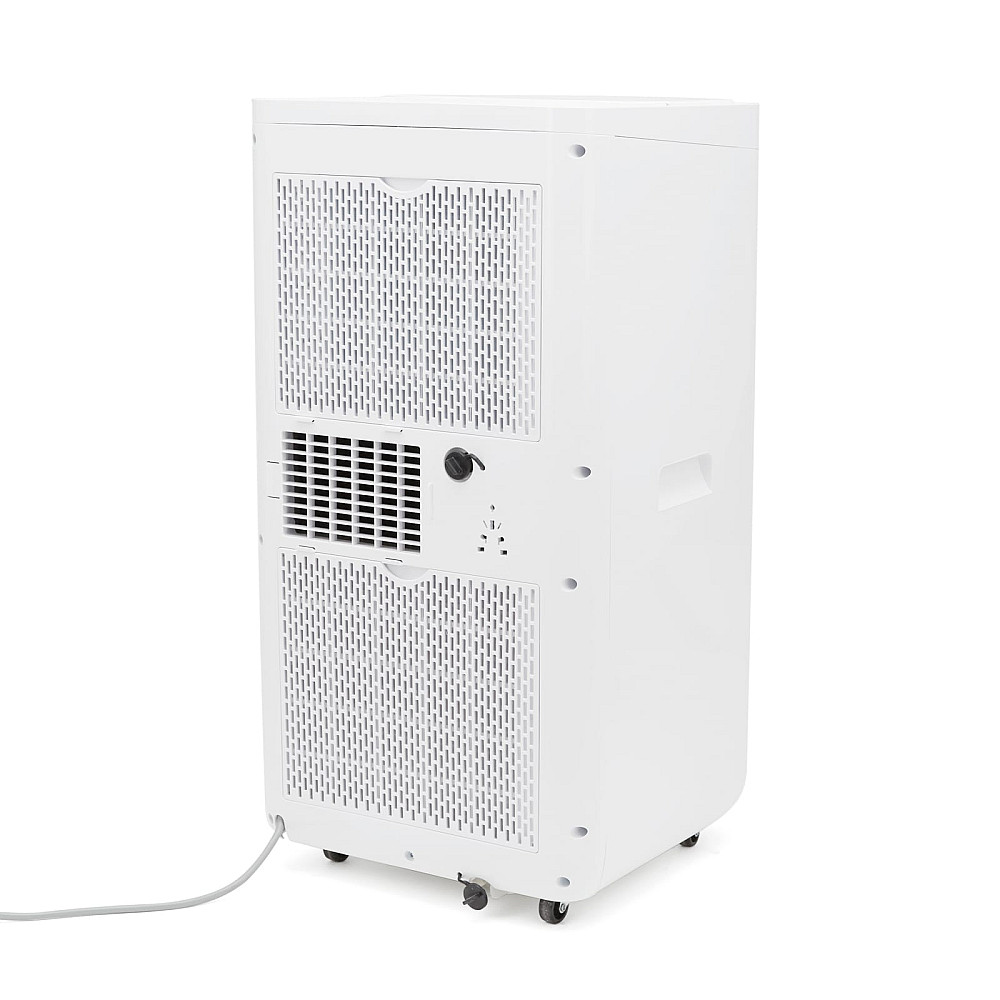 Avfuktningsfunktion för bättre inomhusklimat. I avfuktningsläge arbetar fläkten på lägre hastighet och temperaturregleringen inaktiveras. Enheten kan avlägsna upp till cirka 19 liter fukt per dygn, vilket bidrar till ett torrare och mer komfortabelt inomhusklimat. Kondensvattnet kan ledas direkt till avlopp via slang för kontinuerlig drift.