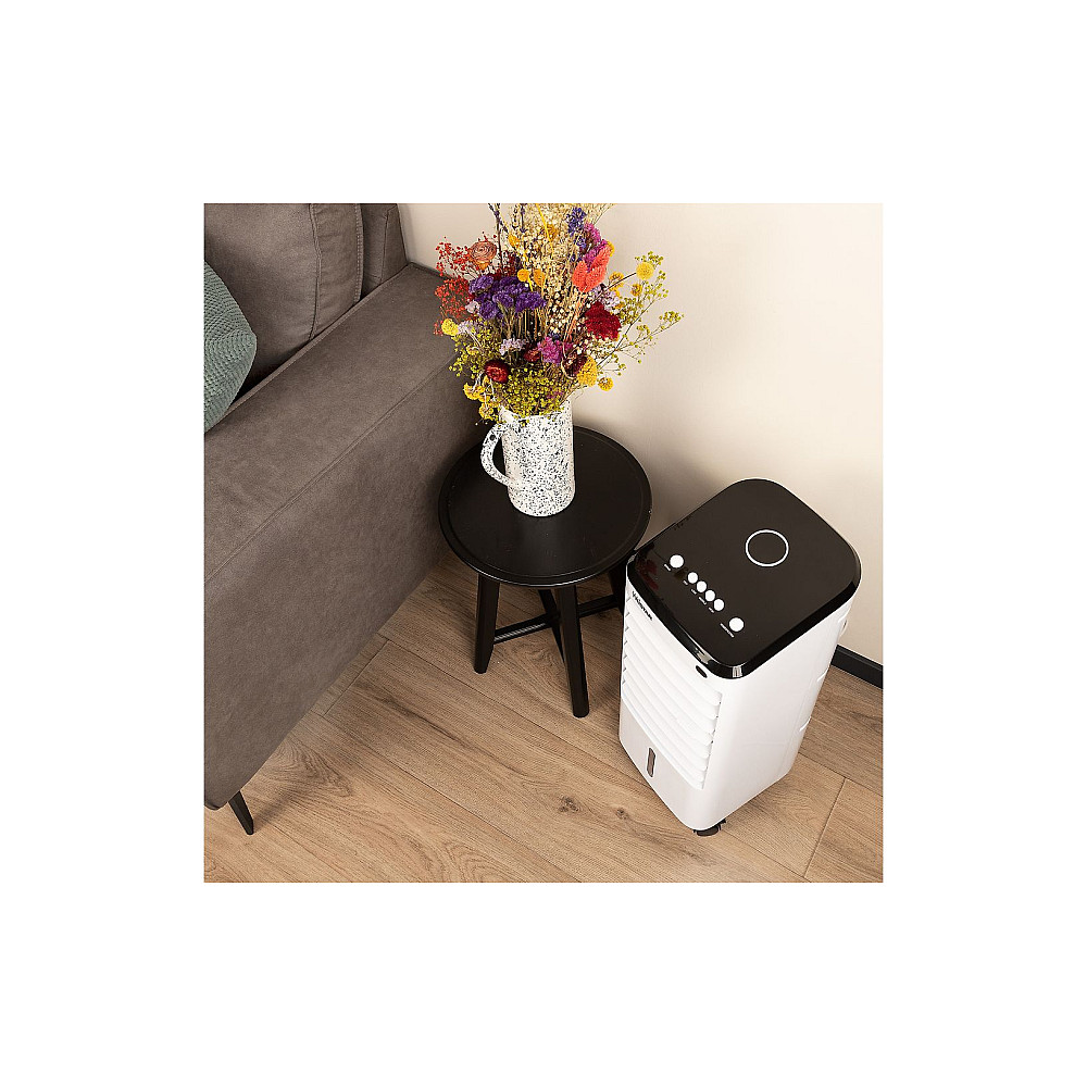 Ingen fast installation behövs. Till skillnad från luftkonditioneringar kräver luftkylaren varken avgasrör eller fönsteröppning. Det gör den idealisk för hem där permanent installation inte är önskvärd.