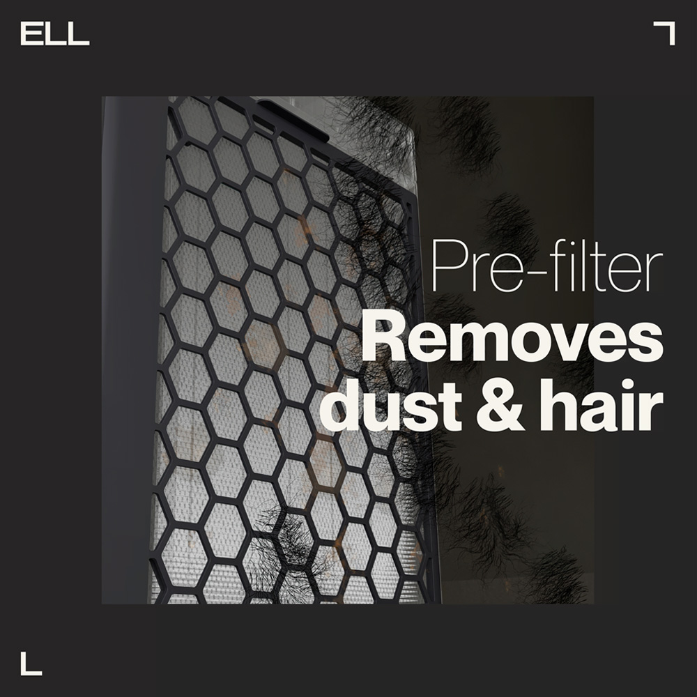 Flerstegsfiltrering för hög reningsgrad. Luftrenaren arbetar med flera filtersteg där förfiltret fångar upp större partiklar som damm och hår. HEPA filtret reducerar mycket fina partiklar som pollen och mikrodamm, medan kolfiltret effektivt minskar oönskade lukter och förbättrar luftens fräschhet.