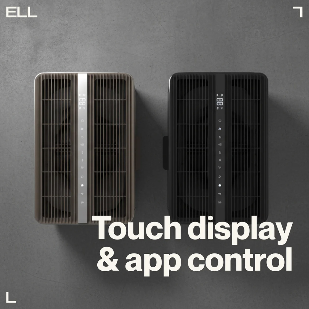 Smart styrning och tyst användning. Luftrenaren kan styras via app eller elektronisk touch-display, vilket gör det enkelt att anpassa inställningar efter behov. Den låga ljudnivån gör att ELL Pury Golden kan användas både dag och natt utan att störa.
