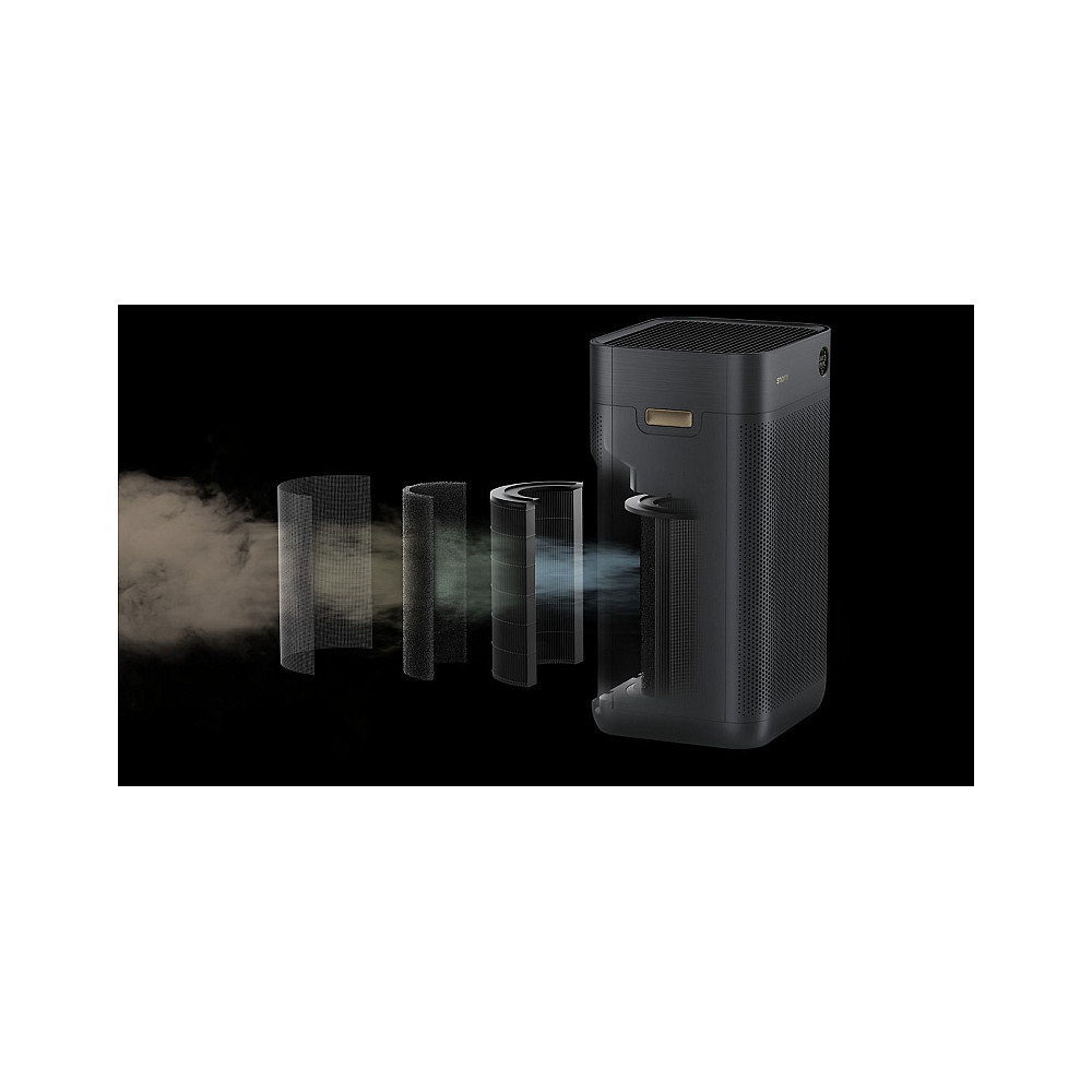 Avancerat 4 i 1 filtersystem. Det flerlagrade filtret består av förfilter, aktivt kol, högeffektivt HEPA filter och skyddslager. Tillsammans fångar de upp mycket små partiklar som damm, pollen, mögelsporer, rök samt luftburna allergener. Filtreringen reducerar även bakterier och virus effektivt.