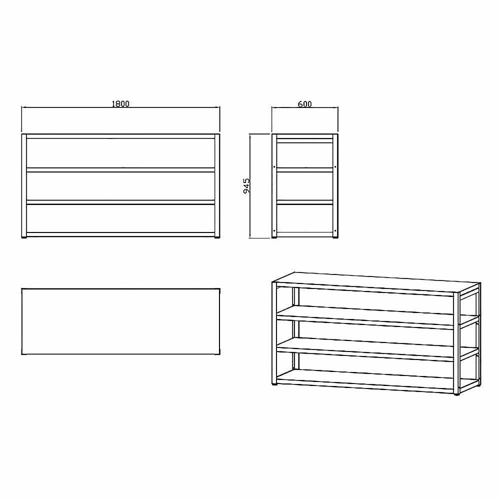 Specifikationer: Arbetsbänk tillverkad av rostfritt stål 201 SS med tre öppna hyllplan. Enkel att placera och utrustad med justerbara fötter. Bredd 180 cm.