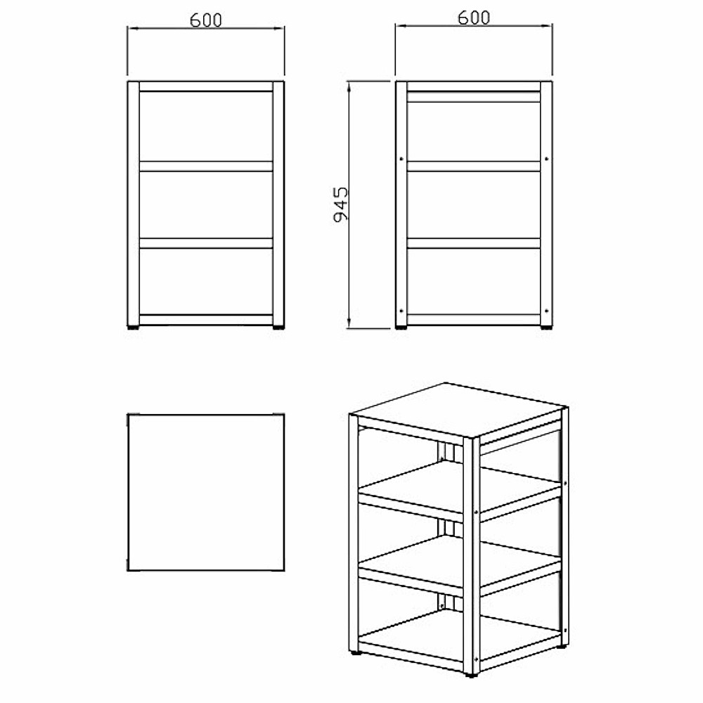 Specifikationer. Hörnmodul med arbetsbänk 60 cm från Myoutdoorkitchen Nordic Line. Tillverkad i rostfritt stål 430 SS. Utrustad med tre hyllplan och öppen design för flexibel användning utomhus.