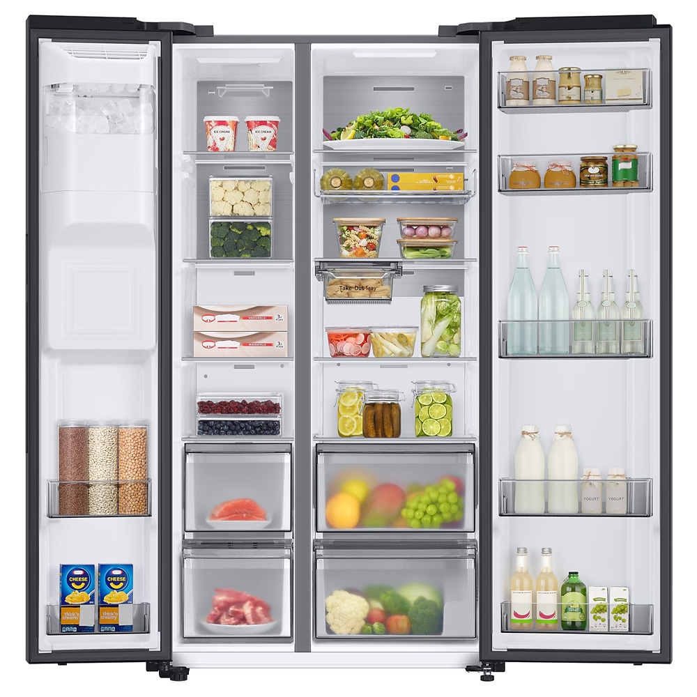 Samsung RS68CG885DB1EF är en Side by Side kyl och frys i premiumklass som kombinerar modern design, innovativ teknik och generös förvaring. Med en höjd på 178 cm och en kapacitet som rymmer hela hushållets matvaror, är denna modell perfekt för stora familjer eller hushåll som vill ha maximal plats och bekvämlighet i köket.