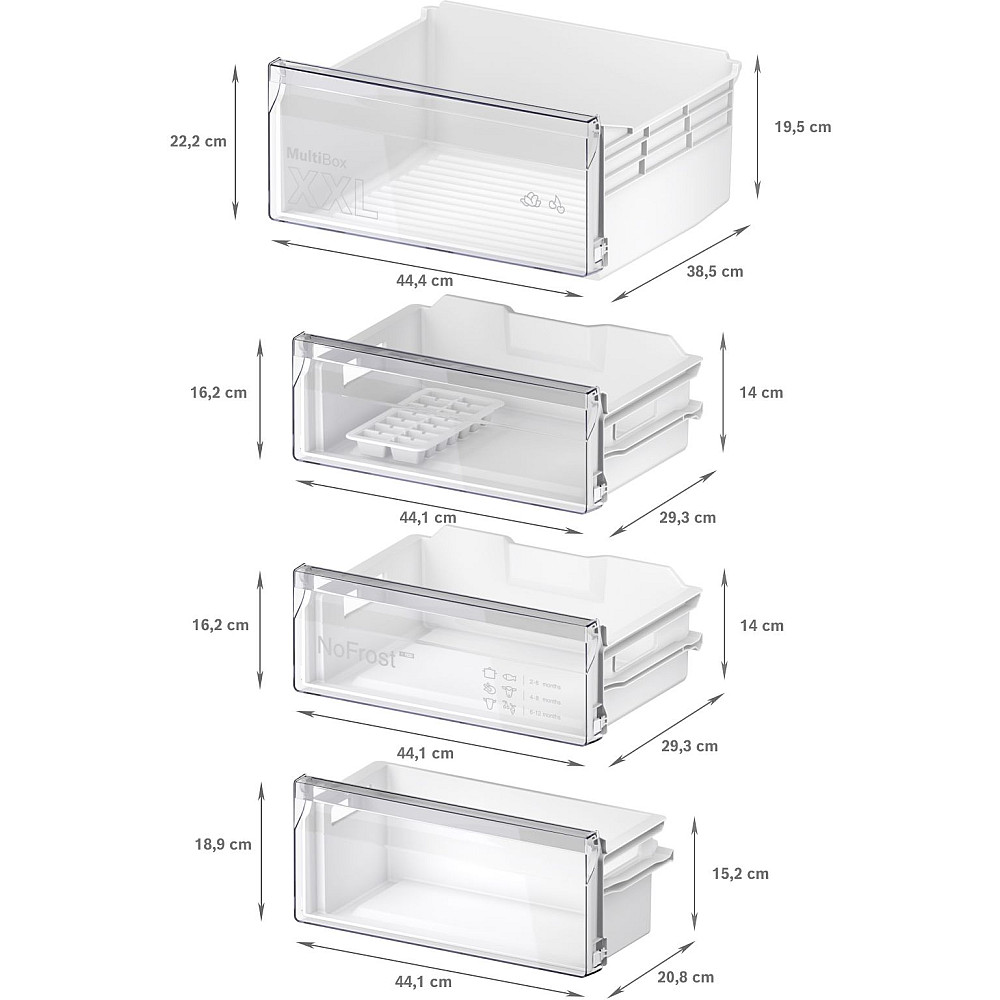 - NoFrost-teknik för automatisk avfrostning. Sparar både energi och tid.
