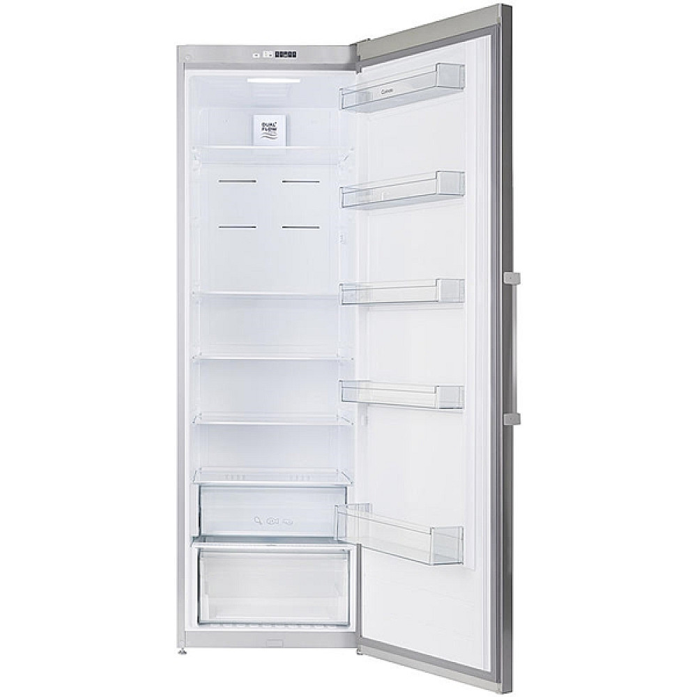 Rymligt kylskåp med stabilt metallhandtag. Genom Dual flow-teknik sprids kylan jämnt och ger rätt luftfuktighet i hela skåpet, vilket är bra framförallt för lite känsliga livsmedel som till exempel grönsaker. Stora rymliga hyllplan och effektiv LED-belysning. En speciellt anpassad zon för fisk och kött förvaring. Dörrarna omhängningsbara.