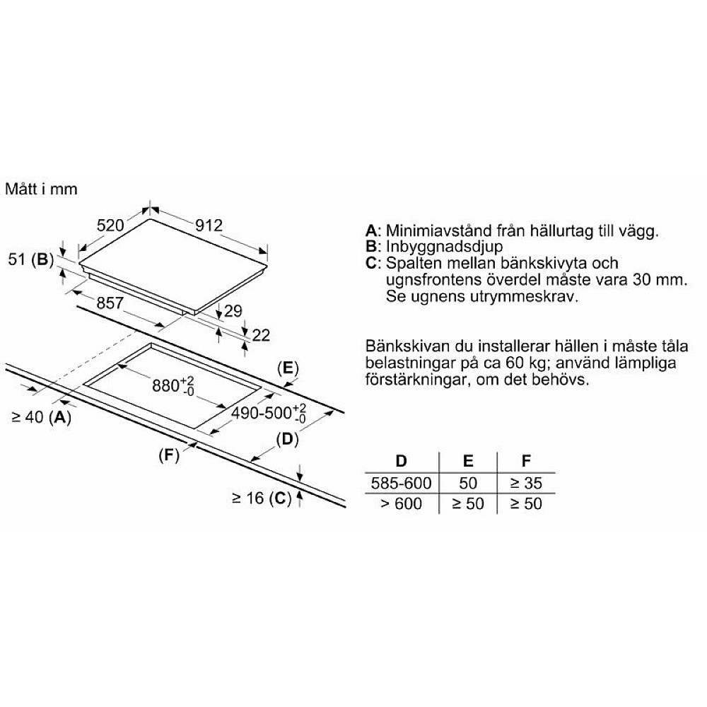 Home Connect med appstyrning och smart köksintegration. Produktmått: Bredd 90 cm, Djup 52 cm, Höjd 5.1 cm