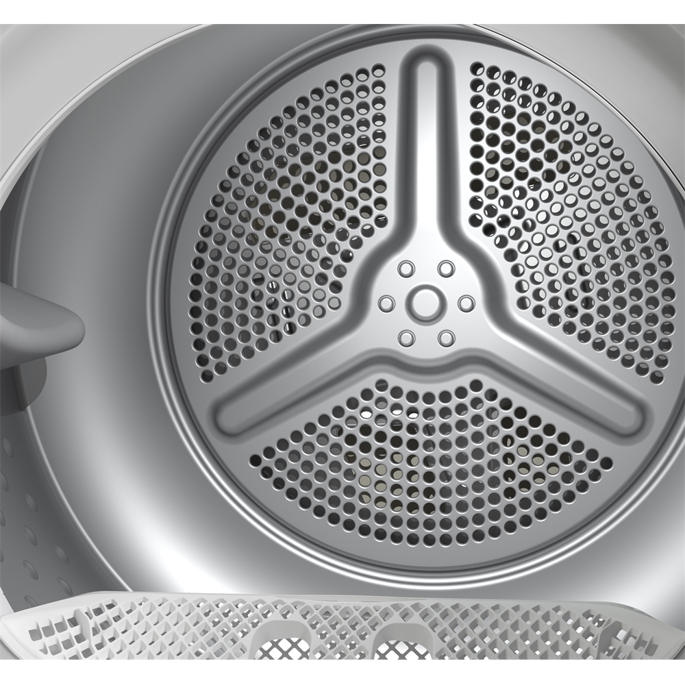 Denna torktumlare är utrustad med värmepumpsteknik som ger effektiv torkning med låg energiförbrukning. Sensorstyrd fuktavkänning anpassar torktiden automatiskt och ser till att tvätten blir jämnt torr varje gång.