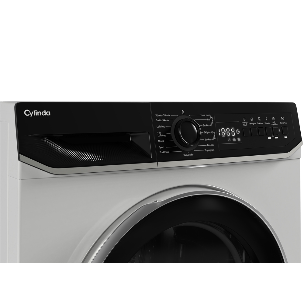 Cylinda TVP911G28E är en effektiv och användarvänlig torktumlare som kombinerar modern teknik med praktiska funktioner. Med en kapacitet på 8 kg är den perfekt för både mindre och medelstora hushåll. Tack vare den generösa trumvolymen på 91 liter och innerbelysningen är det enkelt att både fylla och tömma maskinen, även i svagare ljus.