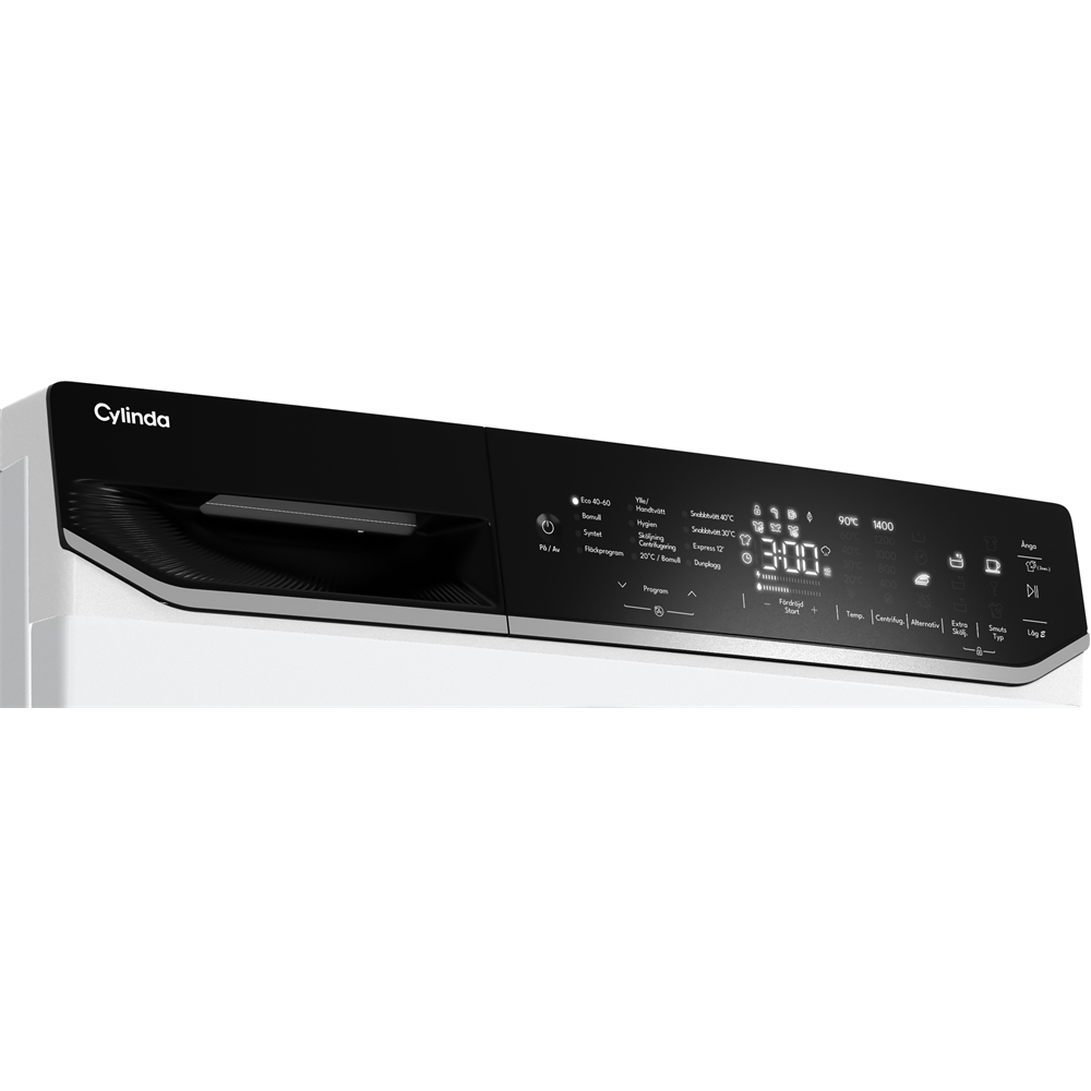 Den tydliga textdisplayen ger dig full kontroll över temperatur, varvtal, tvättid samt vatten- och energiförbrukning. Med funktioner som fördröjd start, upp till tre extra sköljningar, Eco-läge, tidspar och förtvätt kan du anpassa varje tvätt efter dina behov.