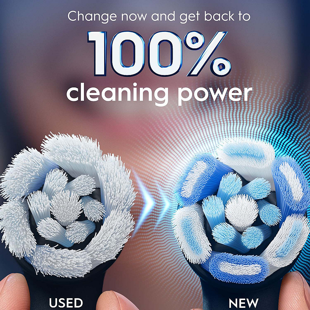 Smidig påminnelse när det är dags att byta Färgskiftande borststrån bleknar till vitt när borsthuvudet börjar bli utslitet, vilket gör det enkelt att veta när det ska bytas.