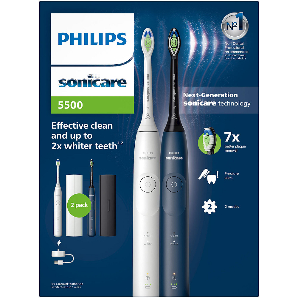 Effektiv rengöring Philips Sonicare 5500 tar bort plack och ytfläckar med avancerad Sonicare-teknik, två borstlägen och ett särskilt blekningsläge.