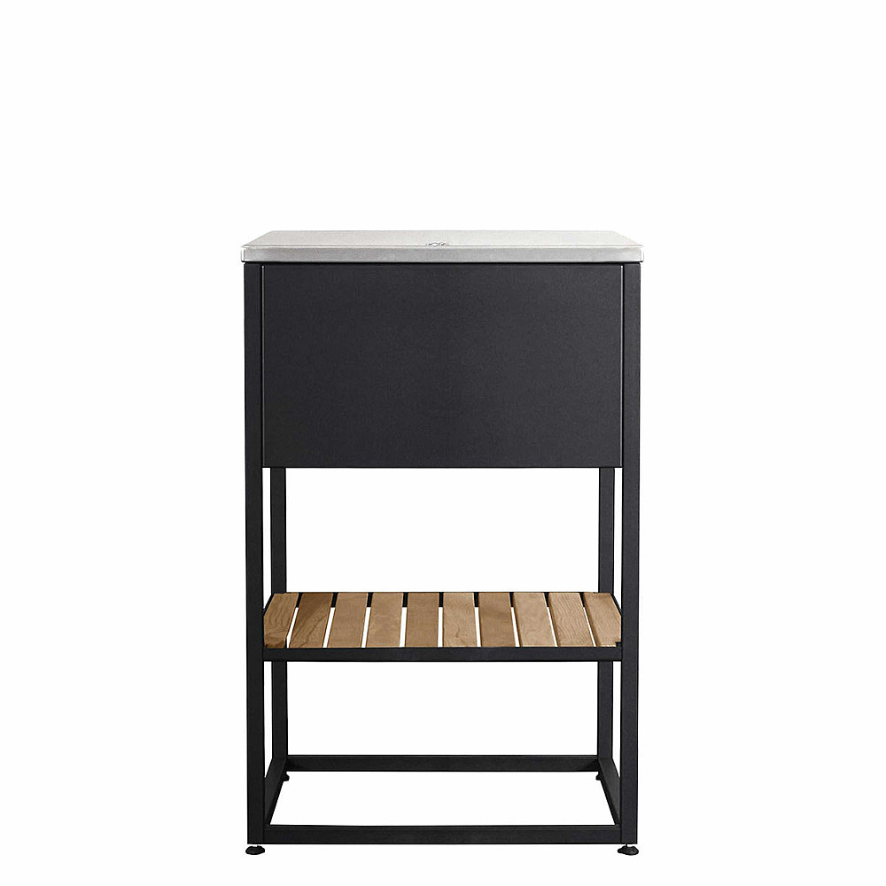 Specifikationer: Fristående hörnmodul med förvaringslåda och öppningsbar rostfri toppskiva med dold förvaring. Tillverkad i höglegerat rostfritt stål 304 SS med exklusiv sidenmatt svart finish. Utrustad med hylla i dekorativ ribbad träpanel av ek samt justerbara fötter. Mått bredd x höjd x djup 587 x 900 x 587 mm.