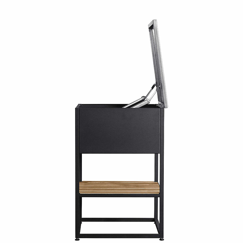 Smart dold förvaring och dekorativ hylla. Under den öppningsbara toppskivan finns dold förvaring med rejäla gångjärn som ger ett praktiskt utrymme för tillbehör. Under modulen sitter en massivt ribbad trähylla i ek som passar perfekt för handdukar, grillredskap, färska örter eller dekorativa detaljer.