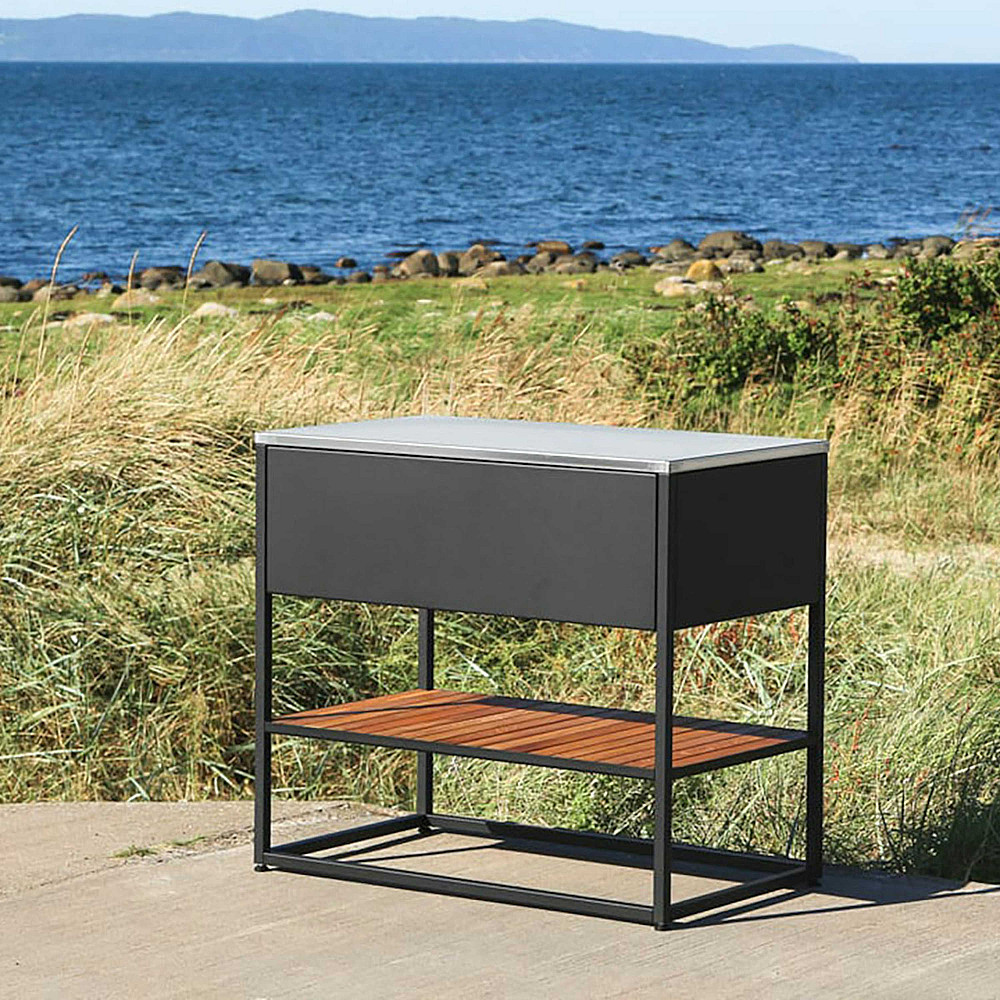 En elegant och funktionell skuffemodul för det moderna uteköket. Skeldervik skuffemodul är en fristående modul med exklusiv design där skandinaviska linjer möter rostfritt stål. Den silkesmatta svarta ytan ger ett lyxigt intryck och skapar en stilren helhet som passar perfekt vid grillen.