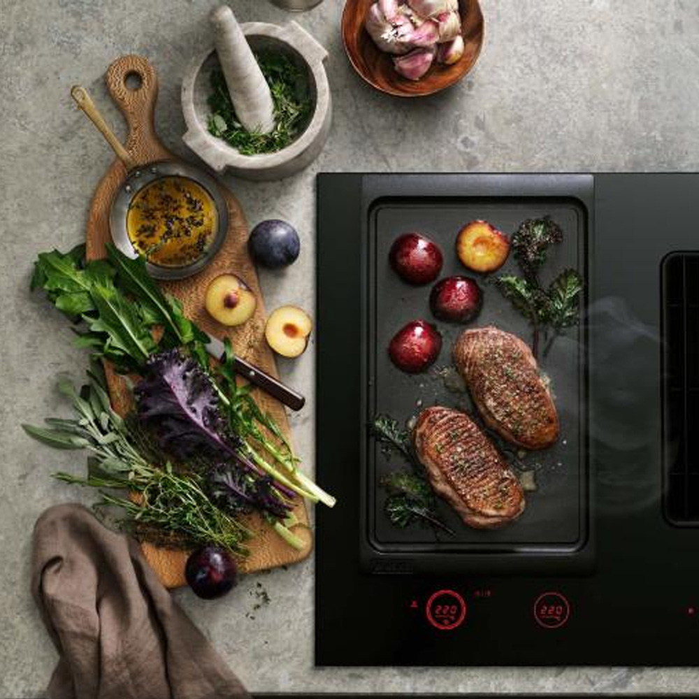 Gjutjärnskonstruktionen ger en jämn och effektiv värmefördelning över hela plattan, vilket säkerställer ett jämnt stekresultat och fin stekyta. Den högkvalitativa mikrokeramiska beläggningen är motståndskraftig, enkel att rengöra och ger optimal kontakt mot det keramiska glaset.