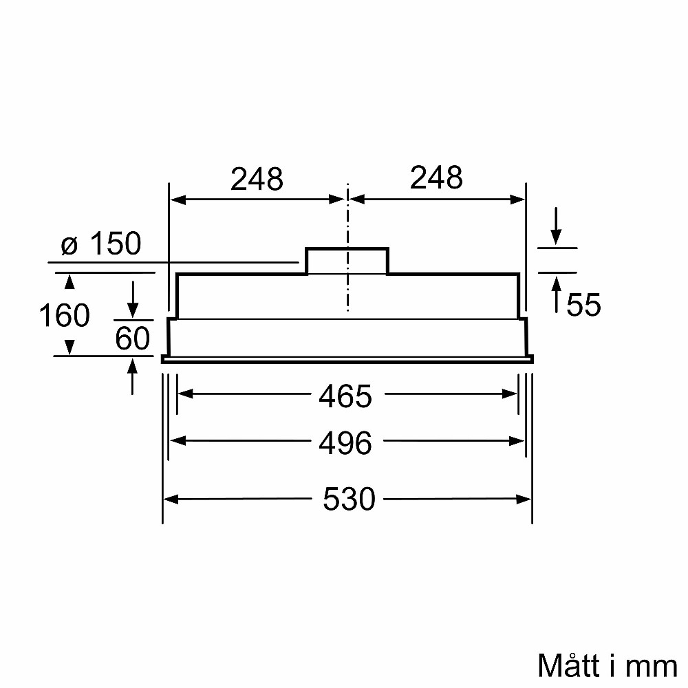 Diskret lösning för moderna kök. Denna inbyggnadsfläkt på 53 cm är utvecklad för installation i förberedda skåp eller över köksöar. Den kompakta konstruktionen gör att fläkten integreras snyggt i köksinredningen samtidigt som den ger effektiv ventilation vid matlagning.