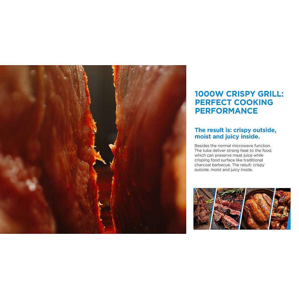 Mikron är dessutom utrustad med en 1000 W grillfunktion som ger maten en härligt krispig yta samtidigt som insidan behålls mjuk och saftig. Perfekt när du vill ge dina rätter mer smak och bättre textur än vid vanlig mikrovärmning.