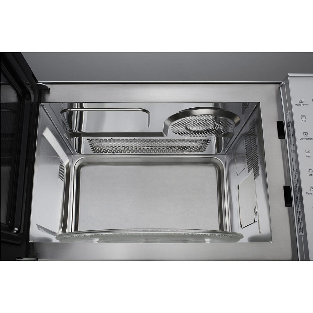 Med en större tillagningsyta än traditionella 27-liters mikrovågsugnar kan du använda tallrikar som annars kräver en 30-liters modell. Kombinationstillagning gör att mikrovågor, grill och varmluft arbetar samtidigt för snabbare matlagning och lägre energiförbrukning.