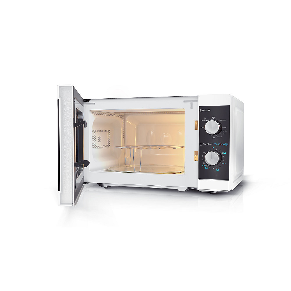 Den roterande tallriken säkerställer jämn värmefördelning och den invändiga belysningen gör att du enkelt kan följa tillagningen. Den lättskötta insidan gör rengöringen smidig vilket gör att ugnen alltid hålls fräsch.