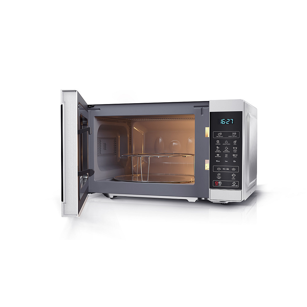 Med en mikrovågseffekt på 800 W och en grilleffekt på 1000 W får du både snabb uppvärmning och möjlighet att ge maten en krispig yta. De elva effektlägena gör det enkelt att anpassa värmen efter varje rätt och den fullt digitala styrningen med tydlig display ger enkel och exakt kontroll.