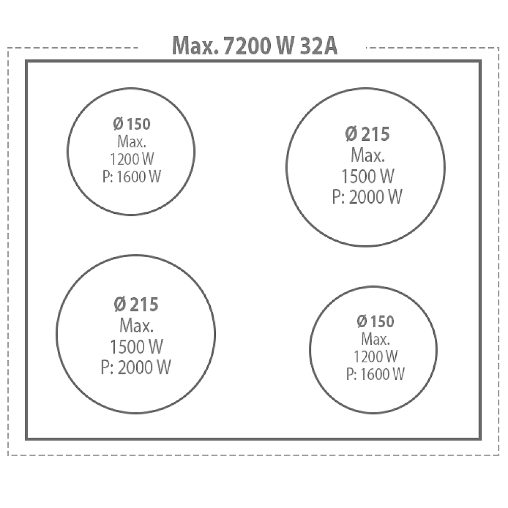 4 induktionszoner med booster för snabb uppvärmning