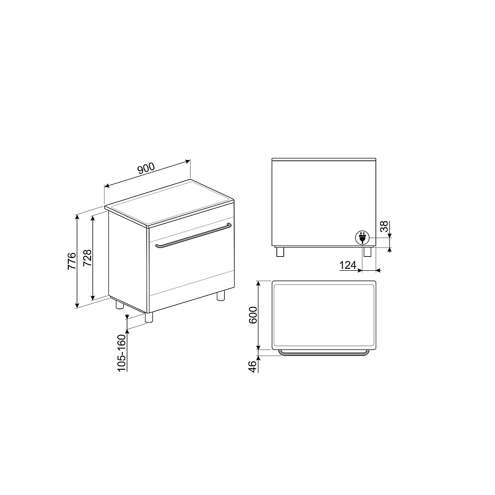 Smeg 90cm bred induktionsspis med enkelugn, stänkskydd & fläkt