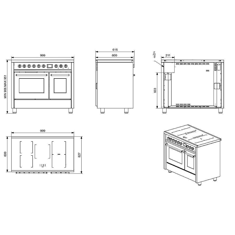 Specifikationer. Steel Enfasi induktionsspis 100 cm i färg svart med fem induktionszoner och två ugnar. Max temperatur 315 °C. Huvudugn 70 liter och sidougn 39 liter. Ugnstyp multifunktionell. Levereras med tillbehör som ett galler en plåt rotisserie och köttermometer. Ugnsfunktioner inkluderar bland annat varmluft grill pizzaläge snabbuppvärmning och upptining. Energiklass A för huvudugn.