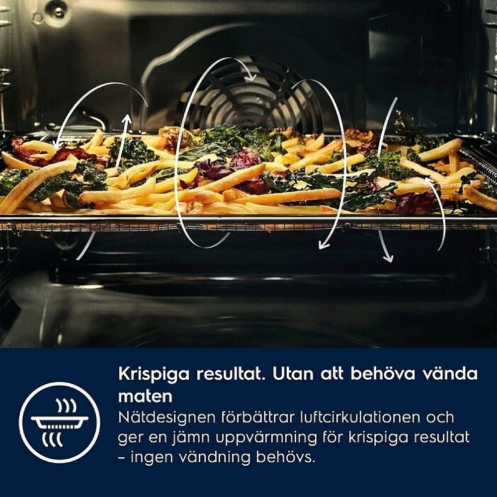 Optimal luftcirkulation för jämn tillagning Den specialdesignade nätstrukturen förbättrar luftflödet i ugnen, vilket gör att värmen fördelas jämnt runt maten. Resultatet blir perfekt tillagad mat med en krispig yta varje gång.