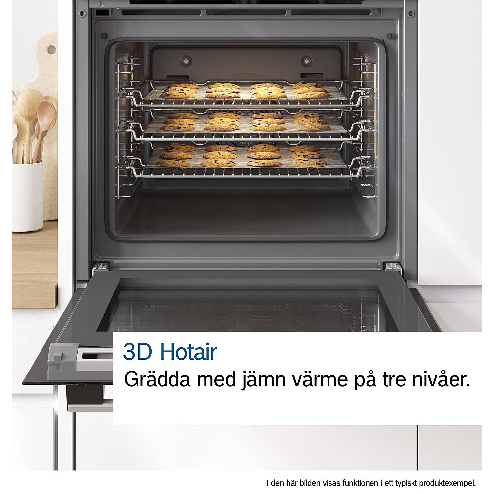 Bosch Serie 2 HBF010BR1S är en pålitlig och energieffektiv inbyggnadsugn i rostfritt stål, perfekt för dig som vill ha jämn värmefördelning och stabila resultat varje gång. Med funktioner som Skonsam varmluft och 3D Hotair får du en ugn som både sparar energi och ger konsekvent bra bak- och matlagningsresultat. Skonsam varmluft är utvecklad för att spara energi vid vardaglig användning. Genom att fläkten fördelar värmen jämnt i hela ugnsutrymmet kan du ofta laga mat och baka utan att förvärma ugnen. Perfekt för småkakor, muffins eller rätter på en nivå - och samtidigt skonsamt för både miljön och din elräkning. Tack vare 3D Hotair får du en snabb och jämn värmefördelning i hela ugnen. Det gör att du kan baka på upp till tre nivåer samtidigt utan att smaker eller resultat påverkas. Tillaga lasagnen för kvällen och kakorna för morgondagen samtidigt - lika bra gräddat oavsett placering i ugnen. Med en tydlig design, enkel manövrering och gedigen byggkvalitet är HBF010BR1S ett smart val för alla kök. Ugnen är utformad för vardagsmatlagning där både prestanda, energieffektivitet och tillförlitlighet är viktiga.