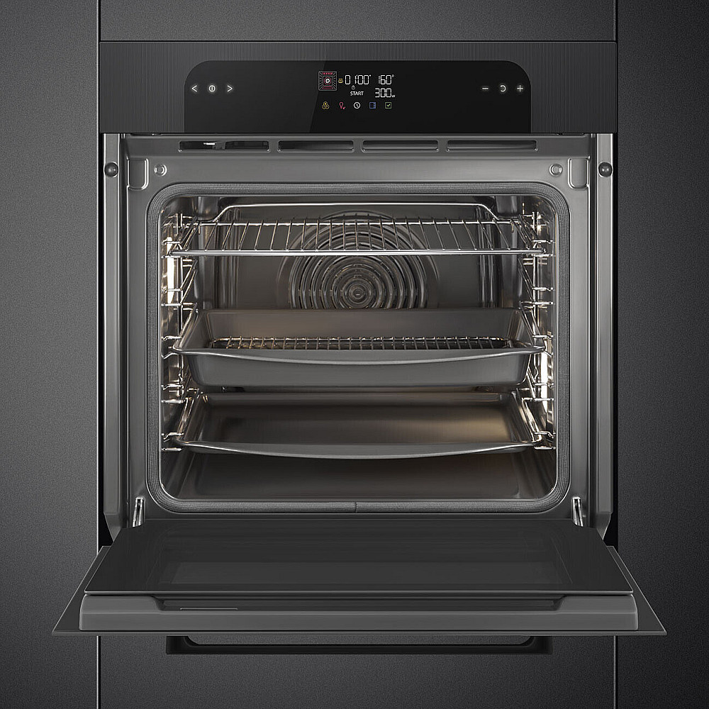 Smeg termoventilerad ugn 60 cm svart multifunktionsugn med pyrolysrengöring