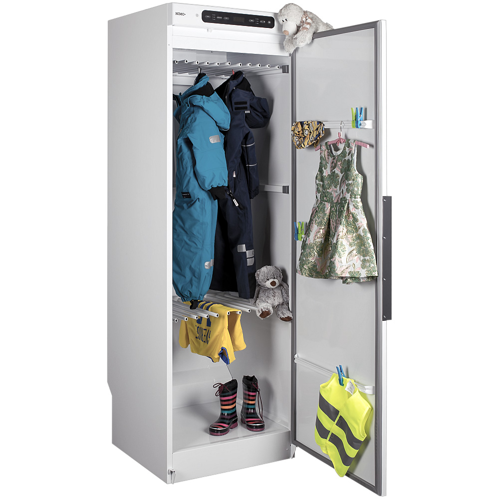 Nimo 6122 är ett sensorstyrt torkskåp som ger effektiv och skonsam torkning med automatisk avstängning när kläderna är torra. Med energisnåla ECO+ sparar du upp till 4085 % energi jämfört med traditionella torkskåp, vilket gör det idealiskt för både hem och tvättstugor.