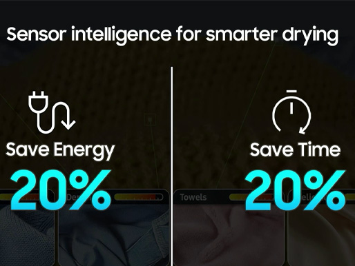 Samsung DV7000D kombinerar energiklass A med värmepumpsteknik som återanvänder varmluften under torkprocessen. Det minskar energiförbrukningen och ger en skonsam behandling av kläderna samtidigt som du får ett effektivt torkresultat.