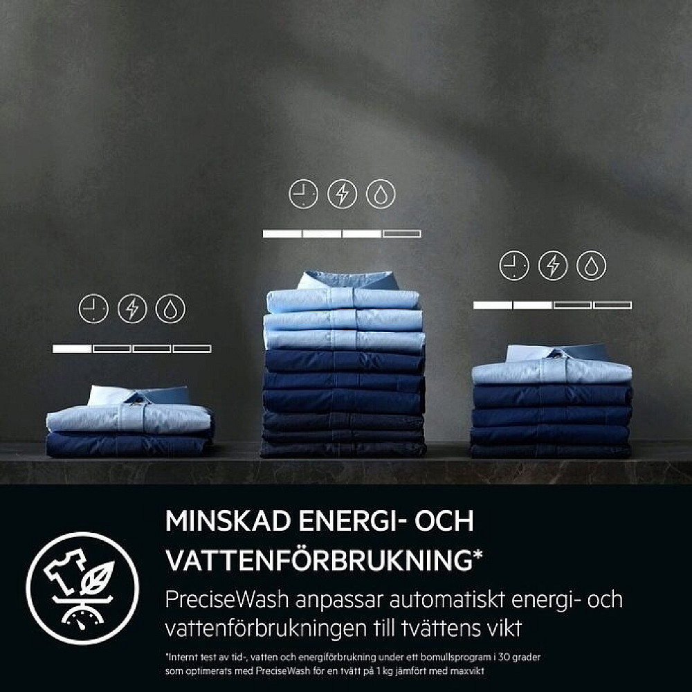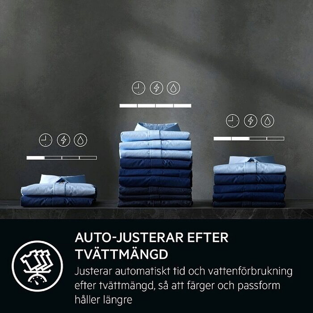 Anpassar varje tvätt automatiskt för att spara vatten energi och tid