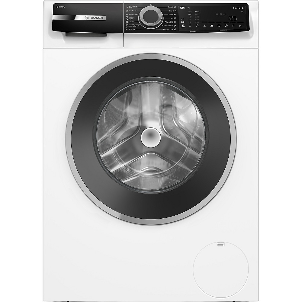 Avancerad tvättmaskin för krävande hushåll. Bosch Serie 6 WGK264FLSN är en frontmatad tvättmaskin med extra stor kapacitet på 11 kg och en centrifugeringshastighet på upp till 1400 varv per minut. Maskinen är utvecklad för att kombinera hög prestanda, exakt resurshantering och smart teknik i ett modernt hem.