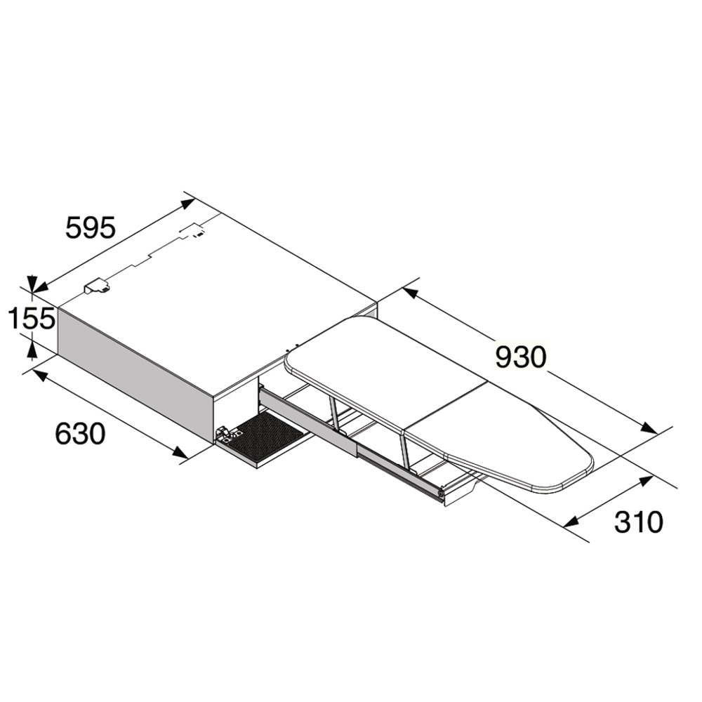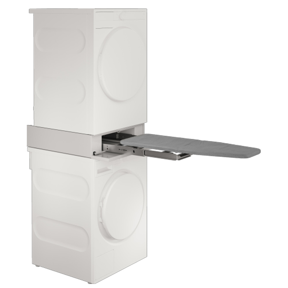 Välj ett sorteringshyllplan som kombinerar praktisk funktion och diskret design. HI150W är perfekt för dig som vill maximera utrymmet mellan maskinerna och alltid ha en integrerad strykbräda nära till hands i tvättstugan.