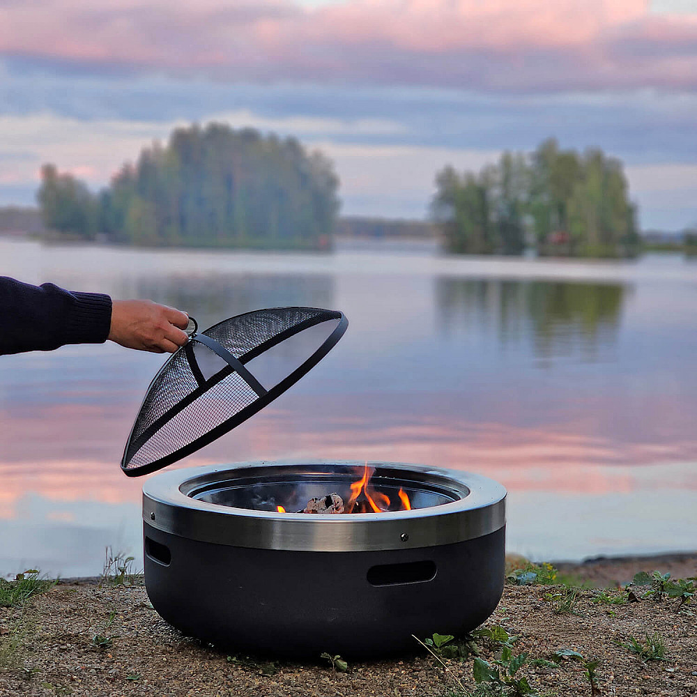 Tryggt och säkert med gnistskydd Burbank är utrustad med ett gnistskydd som minskar risken för sprättande glöd och gör användningen tryggare. Detta gör eldstaden lika lämplig för mysiga kvällar som för sociala tillfällen med familj och vänner.