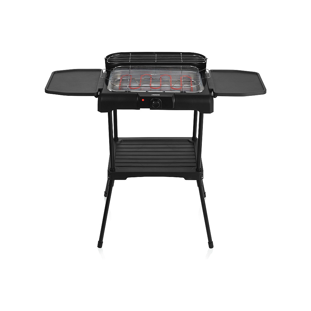 Med det medföljande stativet får du två användningsmöjligheter i samma grill eftersom den kan användas både som fristående utomhusgrill och som bordsgrill vid sociala middagar. Stativet har en praktisk hylla där redskap, marinader och serveringstillbehör kan förvaras. Två grillnivåer gör det enkelt att tillaga olika råvaror samtidigt eller hålla maten varm tills allt är färdigt.