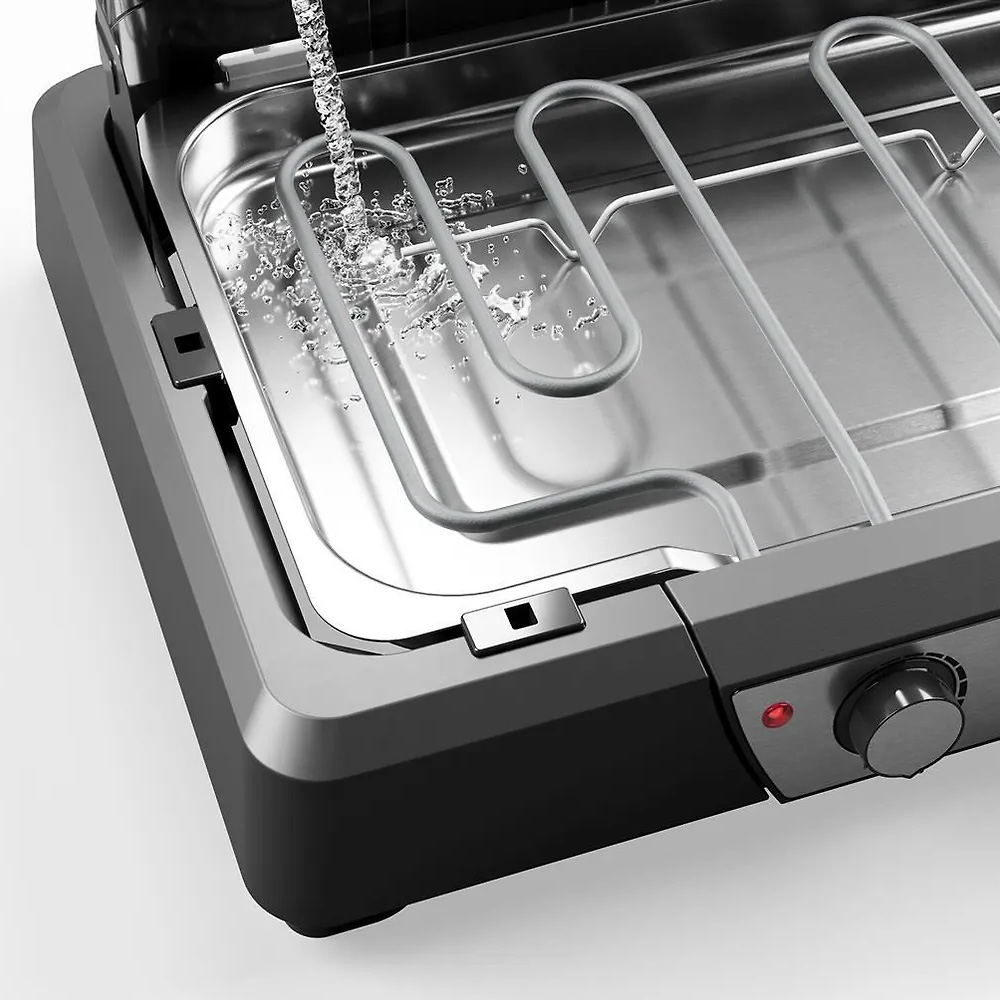Minimalt med rök och smuts tack vare den smarta vattenfyllda fettbehållaren. Fettet kyls ner direkt vilket minskar rökbildning och gör att grillen är ett bra alternativ i många olika miljöer där du vill ha en renare och mer behaglig grillupplevelse.