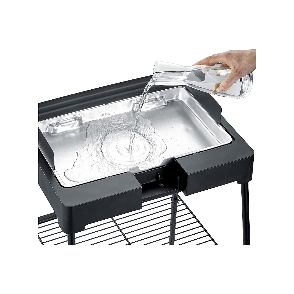 Enkel rengöring och genomtänkt konstruktion underlättar användningen. De löstagbara delarna, som grillgaller och droppskydd, gör efterarbetet betydligt enklare och vatten i droppbehållaren minskar både lukt och rök.