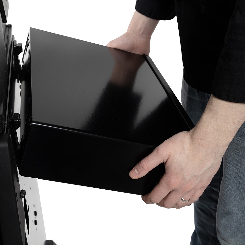 Den extra stora grillytan på 81 x 44 cm ger gott om utrymme för flera rätter samtidigt. De tvåsidiga grillgallren i gjutjärn är vändbara, där ena sidan skapar tydliga grillränder medan den andra fångar upp köttsafter och bidrar till saftigare resultat. Ovanför gallren finns en porslinsemaljerad värmehylla som passar perfekt för att hålla maten varm eller tillaga tillbehör.