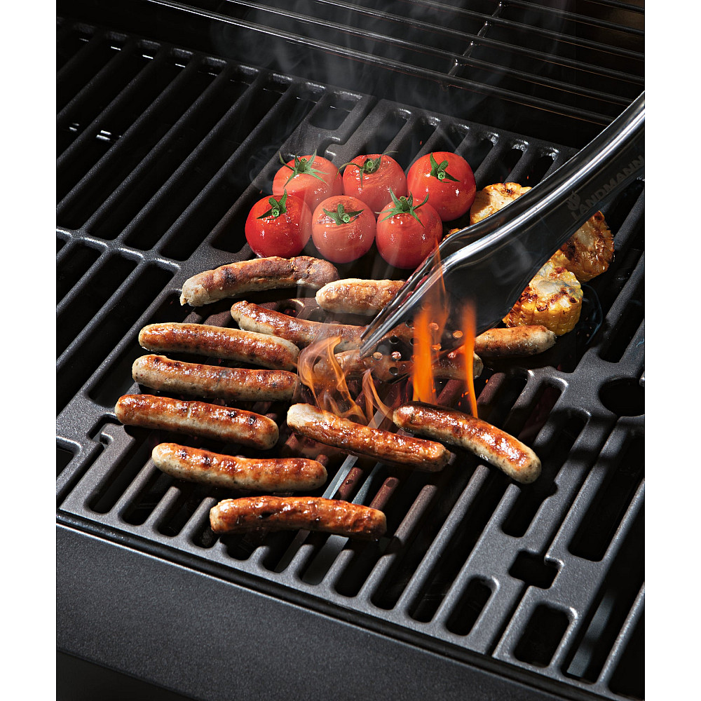 Imponerande grillyta och jämn värmefördelning. De tre robusta grillgallren i gjutjärn ger en generös grillyta på hela 96 x 40 cm. Tillsammans med de emaljerade värmefördelningsplåtarna säkerställs en jämn värme över hela ytan. Det stora varmhållningsgallret på 96 x 15 cm håller maten varm och saftig tills servering.