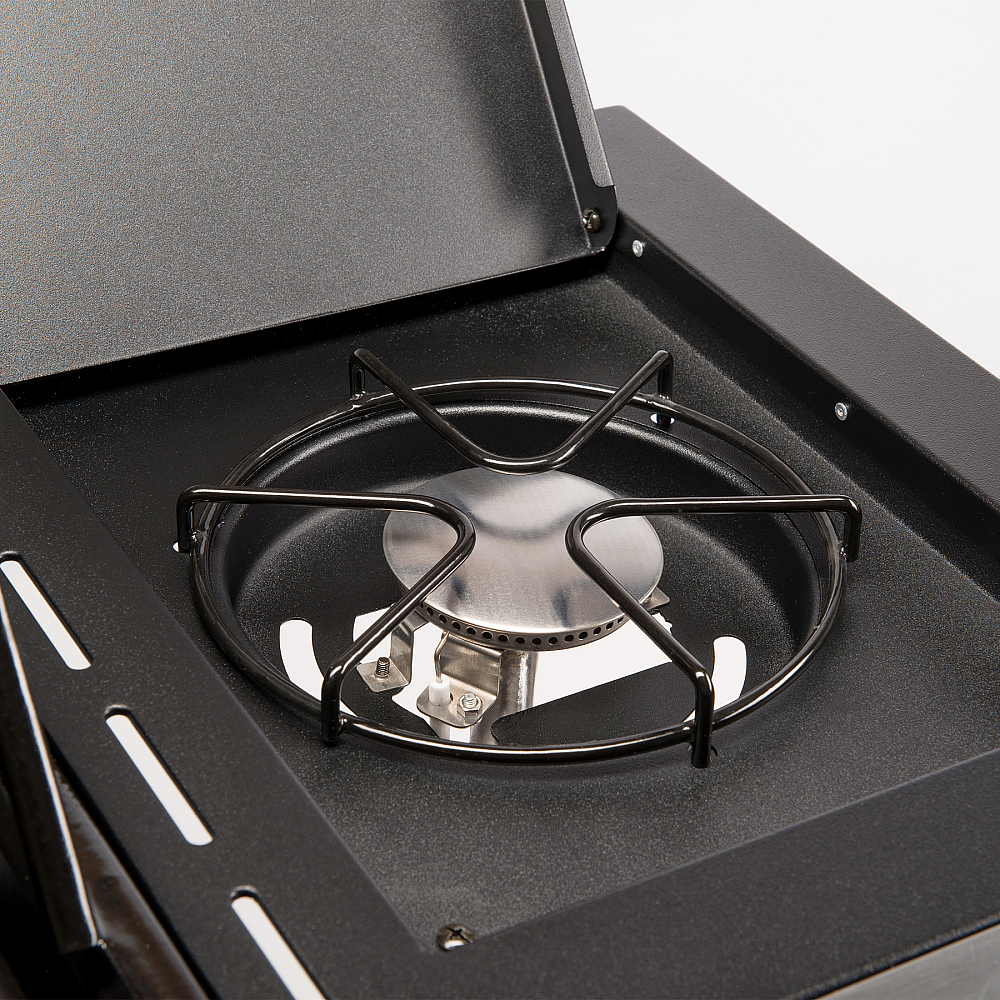 Mer än grillning med CooK och Modulus. Den integrerade CooK-kokplattan på sidobordet gör det enkelt att tillaga sidorätter i kastrull, stekpanna eller wok direkt vid grillen. Med Modulus-konceptet kan du dessutom byta ut mittensektionen i grillgallret och anpassa grillen med tillbehör som pizzasten, wokpanna eller stekplatta.
