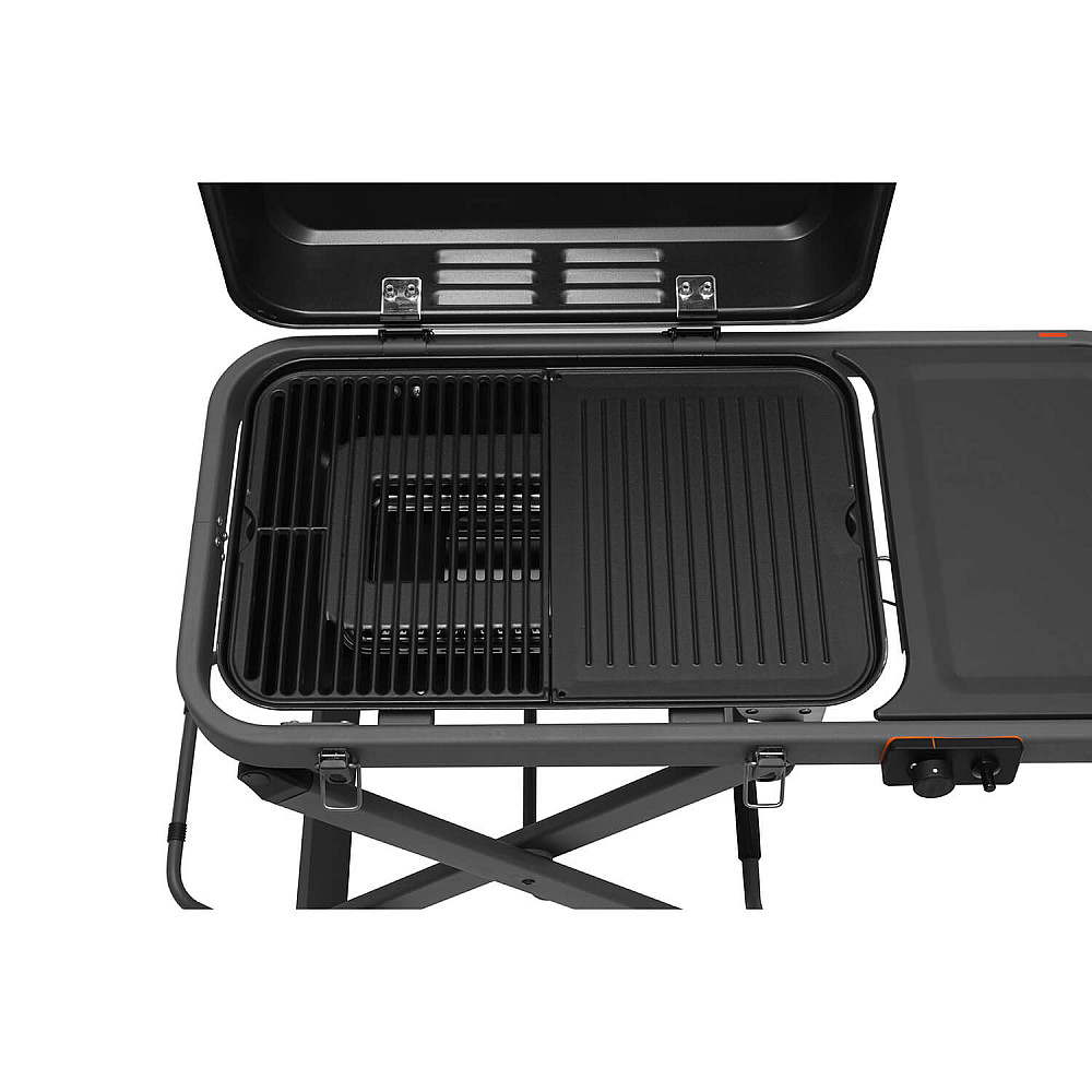 Gjutjärnsyta för mångsidig matlagning Den kombinerade gjutjärnsytan består av både grillgaller och stekplatta som ger dig stor flexibilitet. Grillytan passar för allt från saftig kyckling och fisk till smashburgare och stekta grönsaker. Stekplattan har en slät sida och en räfflad sida för variation i tillagningen.