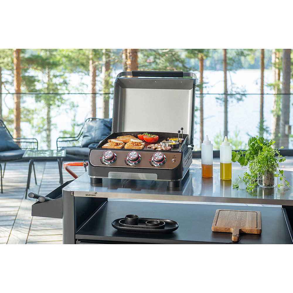Kompakt grill med hög prestanda Mustang Gas Grill Plate 3 är en kraftfull bordmodell som ger dig möjlighet att laga mat med samma precision som en större grill. De tre brännarna ger en jämn och effektiv värme som passar utmärkt för allt från kött och fisk till grönsaker och lättare rätter.