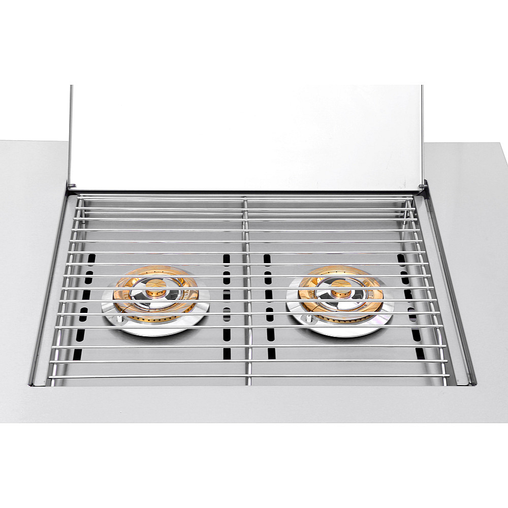 Hållbart material för utomhusbruk. Modulen är tillverkad i 430 SS rostfritt stål och är CE certifierad. Observera att regulator och gasolslang inte ingår samt att modulen levereras omonterad. Vi rekommenderar att monteringen utförs av två personer.