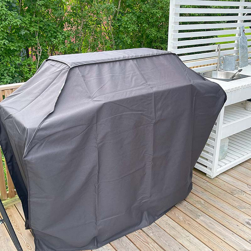 Detta grillöverdrag är tillverkat i kraftig polyester som effektivt skyddar grillen mot sol, regn och kyla. Materialet klarar dagliga påfrestningar och ger grillen ett långvarigt skydd oavsett säsong.
