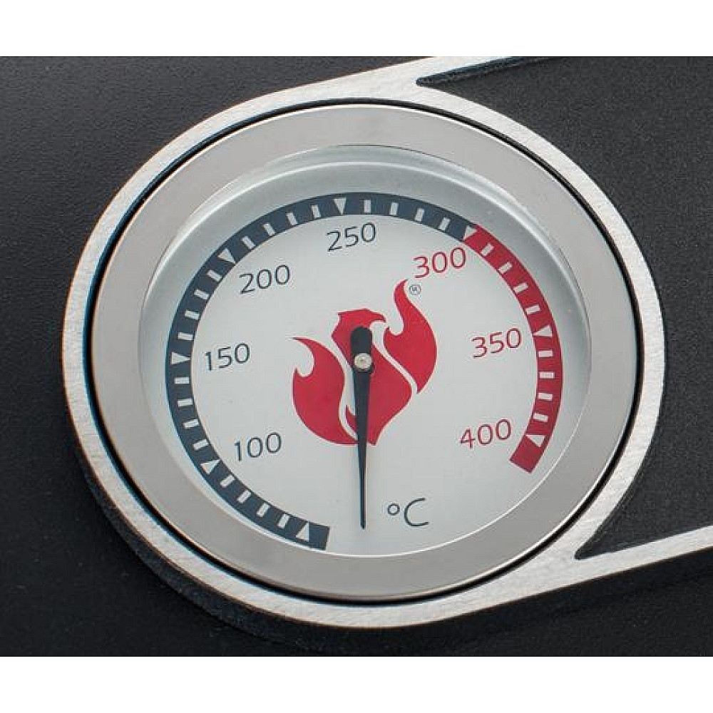 Stabil temperatur och optimal luftcirkulation. Den specialutvecklade LANDMANN Smoker-designen säkerställer effektiv luftcirkulation och stabil temperatur i huvudkammaren. Med en väggtjocklek på 1,5 mm i locket och 1 mm i eldstaden hålls värmen jämn under hela tillagningen. Den integrerade termometern i locket ger dig full kontroll utan att behöva öppna grillen.