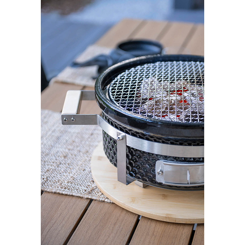 Värmebeständig keramisk konstruktion Grillkroppen är tillverkad av keramik som bevarar värmen effektivt och ger en jämn grillyta. Detta skapar en stabil miljö för tillagning av allt från kött och fisk till grönsaker och små skewers.